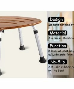 Discount ๐ Costway Bamboo Bath Seat Shower Chair Triangular Slip-Resistant Rubber Tip ๐ฏ
