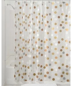 Budget ๐งจ IDesign Gilly Dot PEVA Shower Curtain, 72″x72″, Metallic โญ