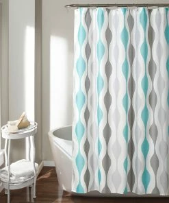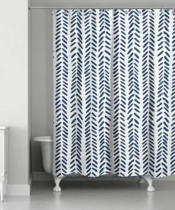 Budget ๐งจ DDCG Modern Herringbone Shower Curtain, Blue ๐