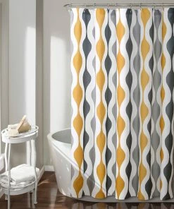 Hot Sale 😉 IDesign Leaves Fabric Shower Curtain, 72″x72″, Yellow And Gray 😉