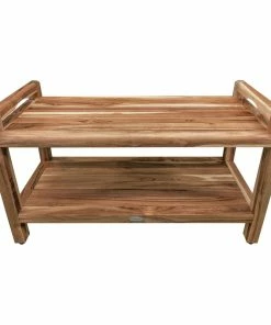Hot Sale โญ EcoDecors EarthyTeak Classic Shower Bench, Shelf And LiftAide Arms, 35″ ๐