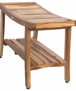 Deals ๐งจ EcoDecors EarthyTeak Tranquility 24″ Teak Shower Bench With Shelf โ๏ธ