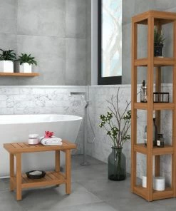 Wholesale 🛒 AquaTeak The Original 24″ Spa™ Teak Shower Bench With Shelf 👏