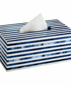 Discount ⌛ Mascot Hardware Striped Tissue Box Cover, White/Blue 🥰
