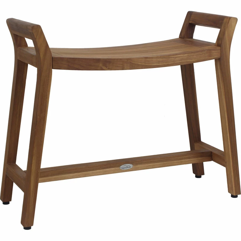 At our largest available size, our extended height Asiaยฎ Ascend teak shower bench is a comfortably spacious 24 inches in length. Couple its ample size with its 21 inch height, this version of our newest line of teak bath stools is perfect for larger showers or as extra seating on your patio. Constructed from the finest teak wood on the planet, this teak shower stool features a scooped seat, flared handles and a stabilizing support bar. For added security, we’ve optimized the legs with rubber-padded feet.