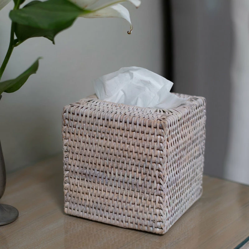 Artifacts Trading Company’s hand woven tissue boxes provide the perfect accent to any room in the house with a tight weave, durable construction, with exquisite and impeccable quality. Woven from Burmese rattan which is natural and sustainable, our rattan trays and baskets come stained in a white wash finish to provide a sophisticated and perfect finishing touch. Products are handmade and each piece is unique therefore slight variations and imperfections exist. Artifacts trading company manufactures a great line of rattan items for your table and home. Wipe clean with a damp cloth.exist.