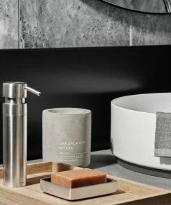 Create a clean look in your bathroom with the help of the Nexio Soap Dispenser. Featuring a stainless steel body and a classic cylindrical shape, this dispenser makes an elegant addition to a modern bathroom countertop or kitchen sink area.