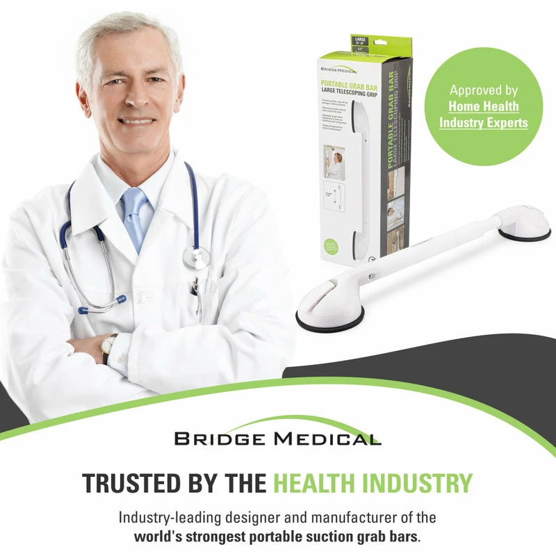 Designed as heavy duty Medical Devices that are tested and approved by health professionals, Bridge Medical’s Portable Suction Grab Bars give you the confidence you need to move freely and independently without worry.