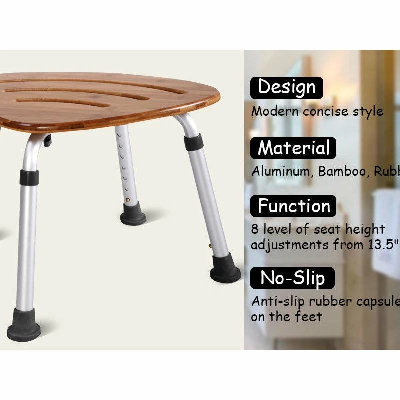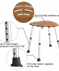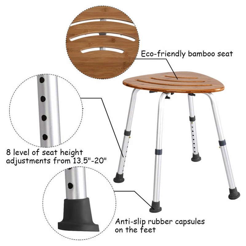 Bamboo Bath Seat Shower Chair Triangular Fanshaped Slip-Resistant Rubber Tip