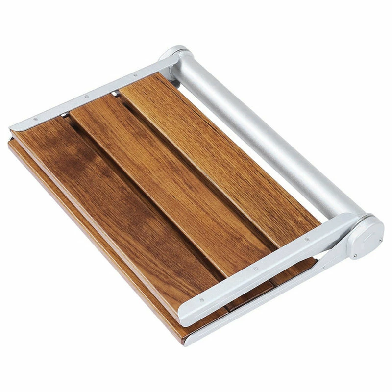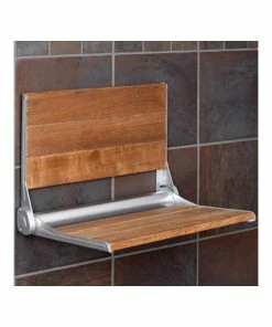 The Home Aesthetics 18″ Teak Wood Seat is a one person folding shower bench. Featuring a high strength easy close mechanism that allows the bench to fold up and stay up! Back rest is easily removable for easy cleaning of the tiles behind the backrest. Automatically fold up to store out of the way. No need to lock into place, a machined precision tension hinge prevents the seat from inadvertently falling down. Slim 3” folded profile