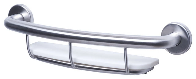 Made of rust-resistant 304 stainless steel tubing for strength and durability, our high quality safety bar has a 1″ outer diameter and measures 18″ long with white acrylic shelf. The grab bar mounts to the wall at two attachment points. Screws are included. Grab bar supports more than 250 pounds when properly installed.