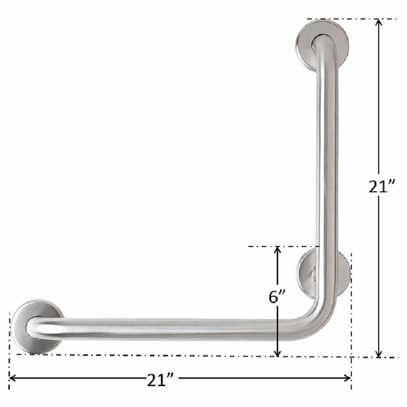 Slipping and falling in the bathroom is unfortunately a common occurrence. Minimize anxiety with stainless steel grab bars that offer safety and stability. Our L-shaped, angled grab bar enables you to stand securely, and significantly helps in the transition from sitting to standing. The vertical and horizontal surfaces offer twice as many options for where to grasp. In the home, L-shaped safety bars are most commonly installed in bathtubs and showers. In commercial settings, angled grab bars offer security and stability in schools, hospitals and nursing homes.