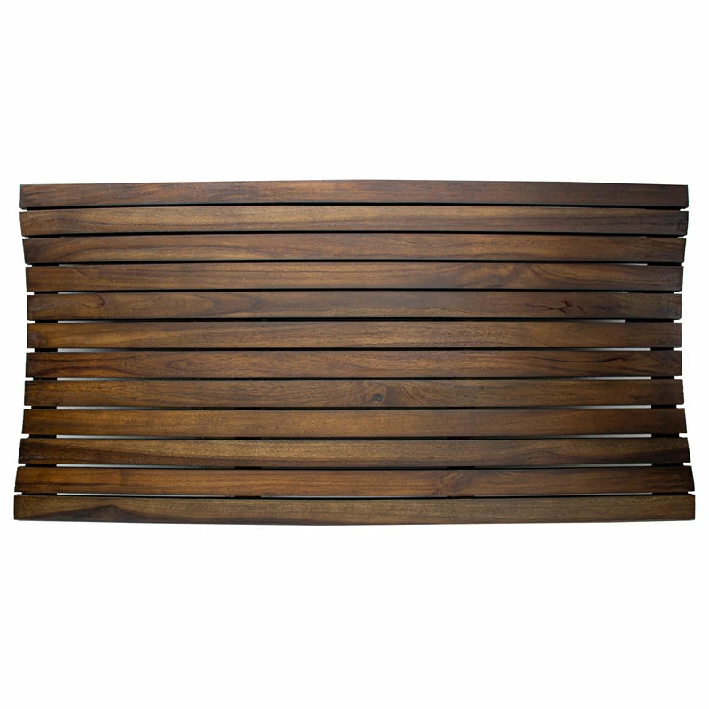 DecoTeak non slip 40″ x 20″ solid teak floor and shower mat provides elegant functionality in our out of the shower. The non slip feature is another 1st of its kind innovation from DecoTeak. The cut lattice pattern not only provides a beautiful decor accent, but also provides a functional non slip surface. Slipping and falling is the number one cause of injuries among older adults, and the bathroom is the number one place this occurs. In a constant effort to fuse beauty with functional safety features DecoTeak continues to innovate in its line of teak bathroom furniture. The teak shower mat has a non slip rubber track on the back to prevent the mat from shifting on the shower floor. Slats provide space for ease of water drainage through the floor. Teak is naturally water, mold, and mildew resistant due to its natural density and high oil content. It has been the wood of choice for hundreds of years of luxury boat builders. This teak mat to be used outdoors as well as indoors
