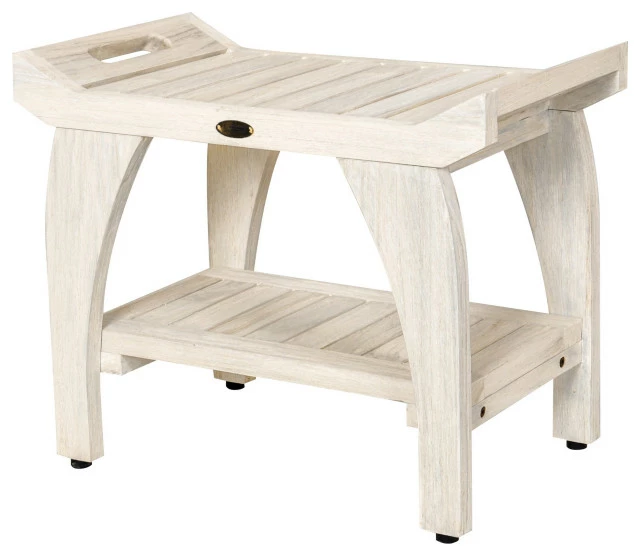 Deals ๐งจ EcoDecors EarthyTeak Tranquility 24″ Teak Shower Bench With Shelf โ๏ธ