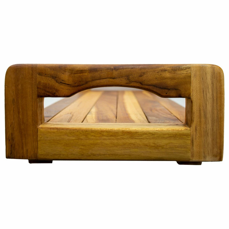 EcoDecors Eleganto LiftAide fully assembled solid teak bathtub bench board seat sits across the top of most bathtubs. This teak seat provides a full 250-pound seating capacity to assist in providing safety transferring in and out of the bathtub. The LiftAide arms provide additional support, stability, safety, and gripping ability to assist in transferring your body weight. It provides dual functionality of providing a large teak surface area to use as a bathtub tray to place your needed amenities for your peaceful soak. Whether it be a book, magazine, bath salts, loofah brush, shampoos, soaps, or your favorite beverage, this tray will hold it all. It is made of solid teak with a slatted surface to allow for water drainage. This product is fully assembled and ready to place on your bathtub. This masterpiece, made by local Indonesian coastal village workshops, will provide both functionality and elegance to your bathroom. The proprietary EcoDecors finish brings to the forefront the gorgeous natural grains and colors naturally found in teak wood. Manufactured only from certified sustainably harvested teak wood. We are a woman-owned small business that provides itself on providing the nexus of superior quality, value, style, with unsurpassed service and support.