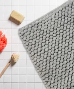 DII offers 100% cotton ribbed bath mats in two sizes and varies colors/design. Sizes include 17×24: and 21×34-. The 17×24- size is great for pairing two bath mats together: one in front of the bath tub and one in front of a single sink. Or you could also pair two mats in front of a double sink for a unique look.
