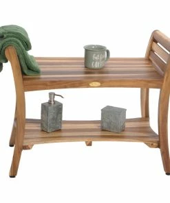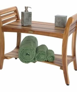 Best Sale ๐ EcoDecors EarthyTeak Serenity Eastern Style Shower Bench, 18″, With Shelf ๐ฅฐ