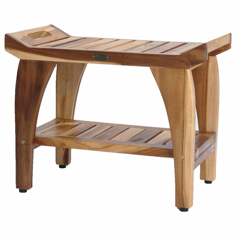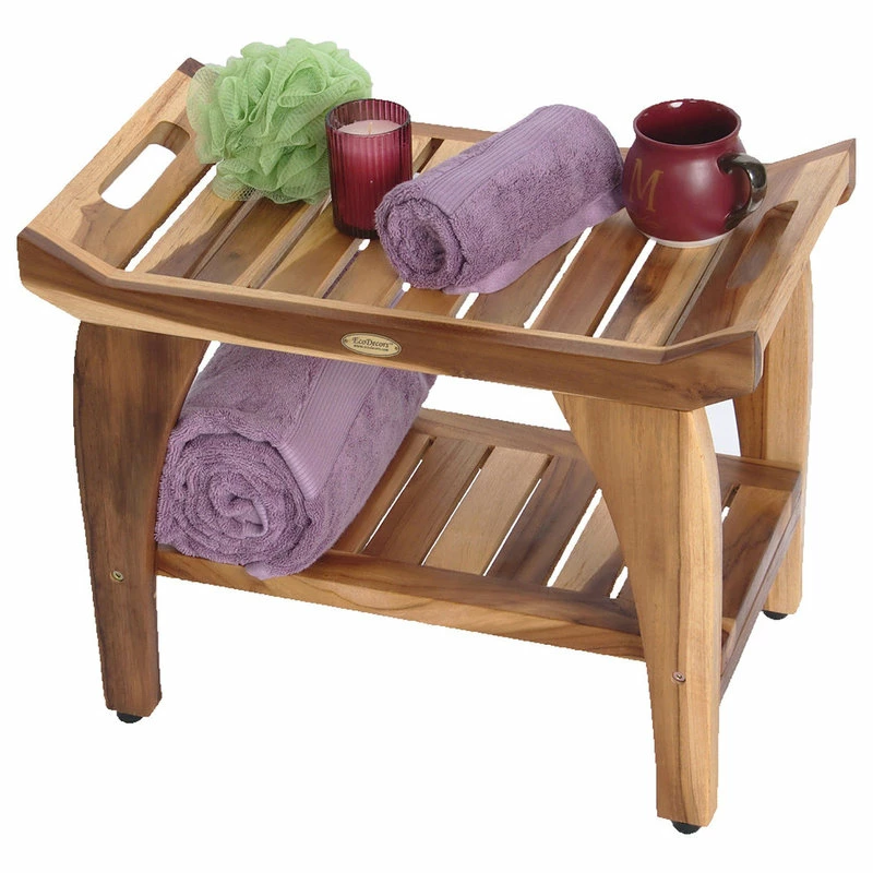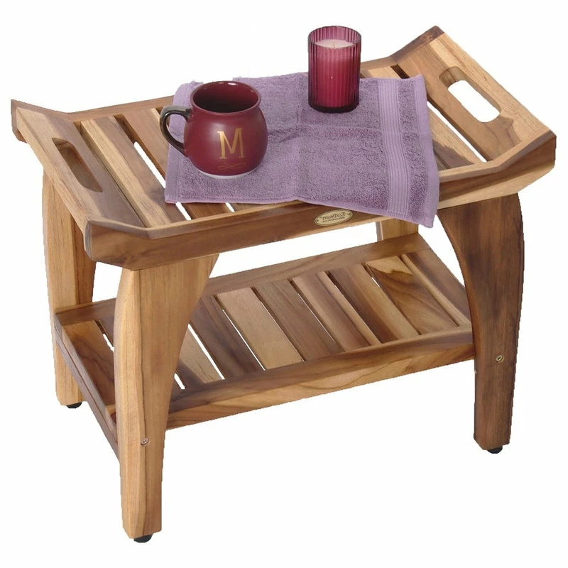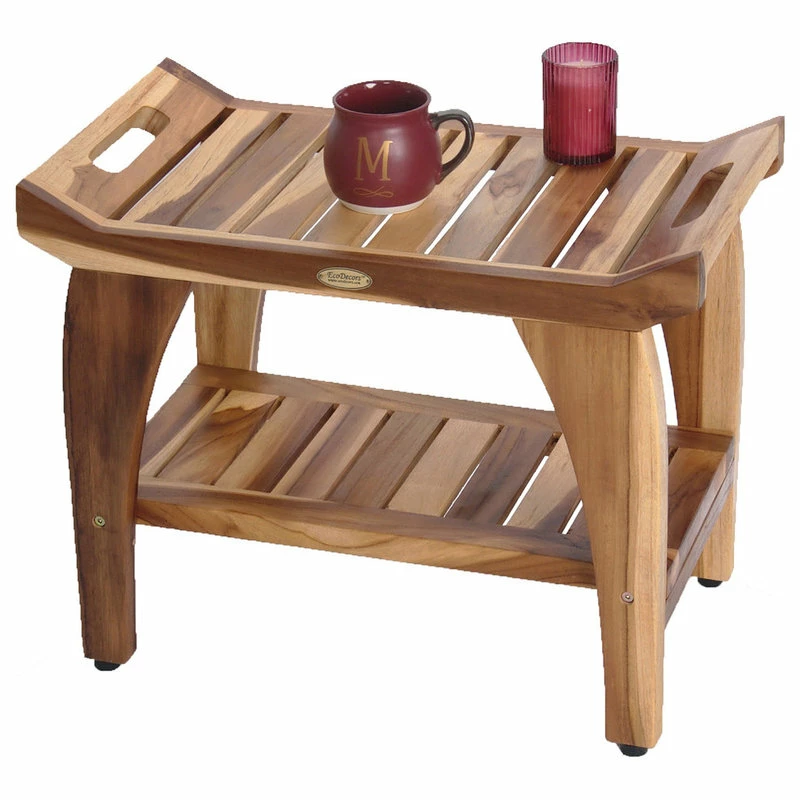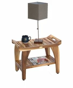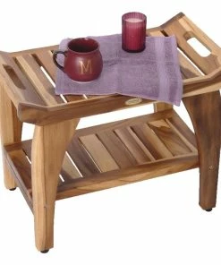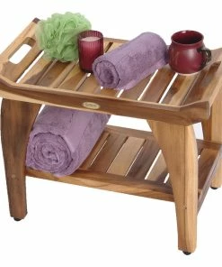 Best Sale ๐ EcoDecors EarthyTeak Serenity Eastern Style Shower Bench, 18″, With Shelf ๐ฅฐ