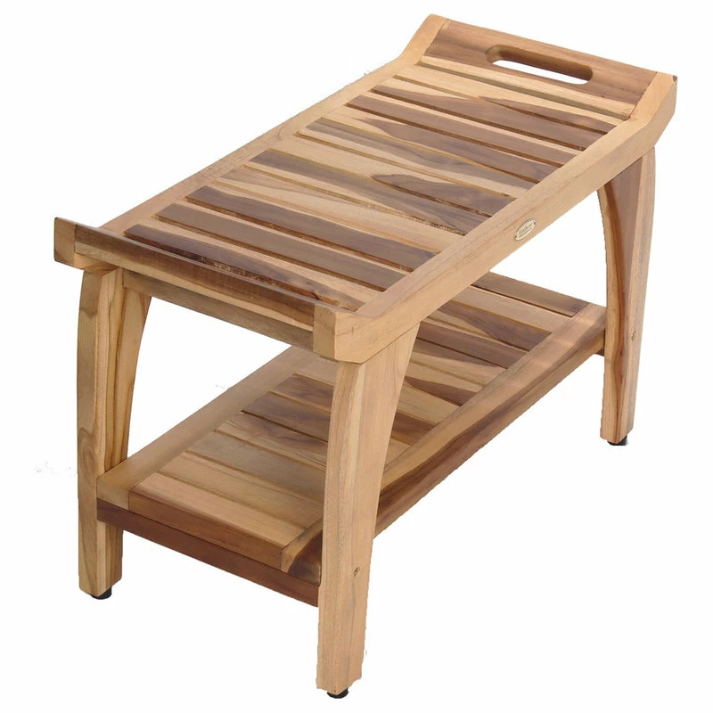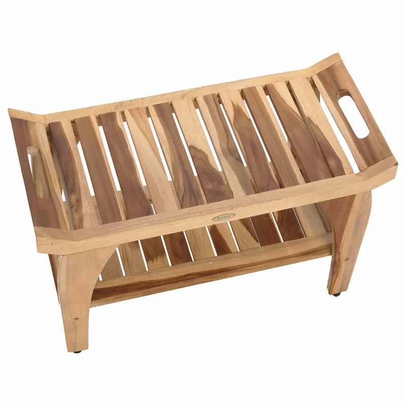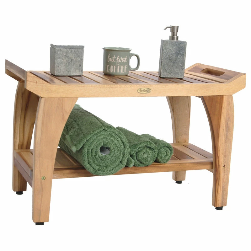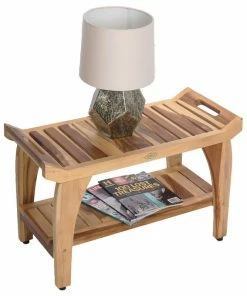 Deals ๐งจ EcoDecors EarthyTeak Tranquility 24″ Teak Shower Bench With Shelf โ๏ธ