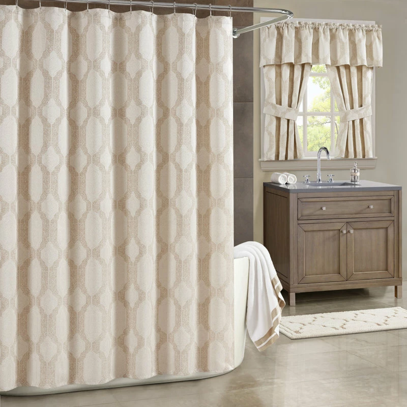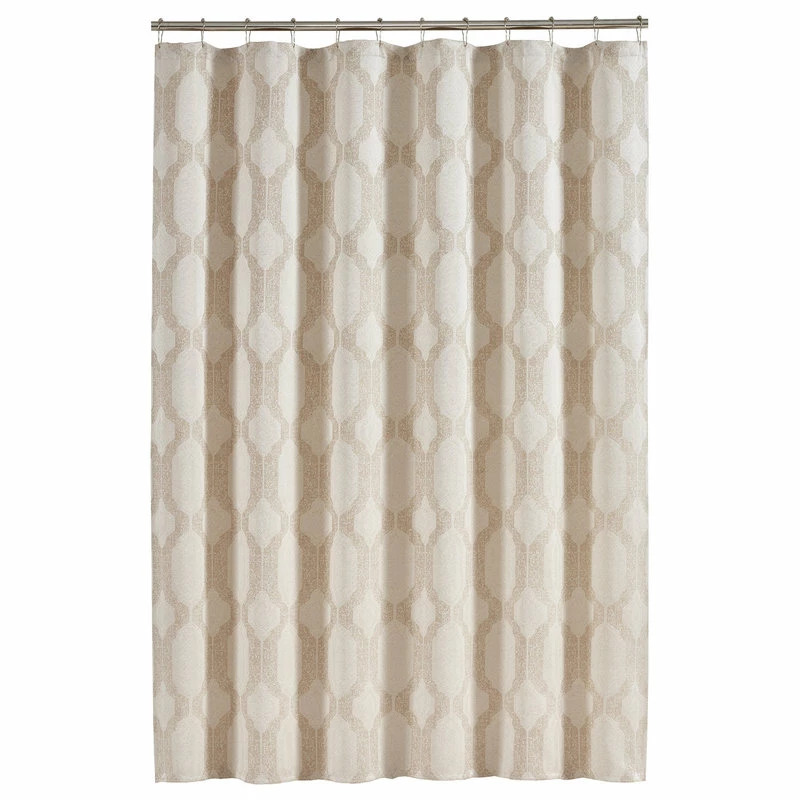 SUSSEX is a beautifully woven jacquard in a natural palette of beige, creme, and ivory. This highly constructed shower curtain has a modern geometric design bringing a sleek look to your bathroom decor.