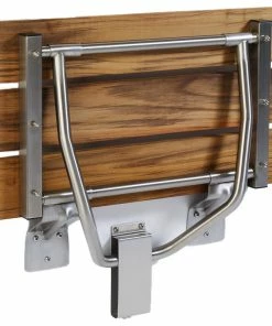 - Seat Frame: 1 Inch (31.75mm) square 16 gauge and 1″ (25mm) diameter round 18 gauge stainless steel satin finished tubing with #4 satin finish. The mounting brackets are manufactured from 12 gauge stainless steel. The (optional) easy to fold legs have adjustable feet, allowing you to adjust to the pitch of the shower pan or floor, from 17 to 19 Inches (431.8mm to 228.6mm) to the floor.