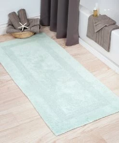 Our 100% organic cotton creates the plush texture of this absorbent organic cotton bath rug. This mid-weight weight bathroom rug is machine washable. The quality of this bath rug is top-grade and is considered one of the best (if not the best) reversible bath rug in the world.