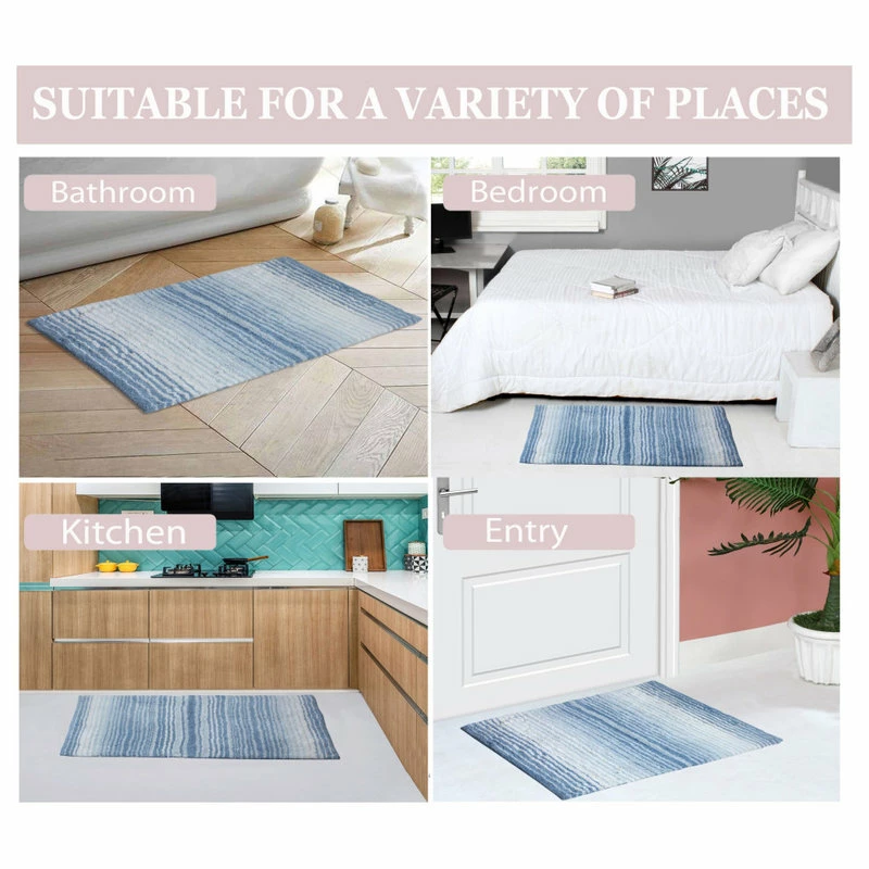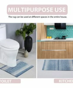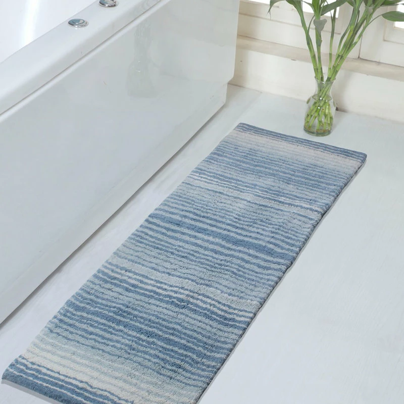 Gradiation Rug Collection includes attractive rugs that feature geometric lines in vertical fashion. Spruce up your bathroom area with these multicoloured rugs for both, nicely-done interior and functionality. Made in India, each rug is highly absorbent. With them on the floor, rest assured the floor will be dry even after a shower. Step on them and they won’t slip. The collection has single rugs and sets to make sure all your needs are met. Gradiations rugs are available in different colours, so you can choose the best for your home interior. Special cut-out rugs are available for toilet seats as well.