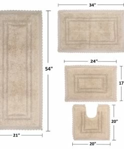 Home Weavers Opulent Bathmat Collection – Absorbent Cotton Soft Reversible 4 Piece Bath Rug Set, Machine Washable, 17″x24″, 21″x34″, 20″x20″, 21″x54″, Linen