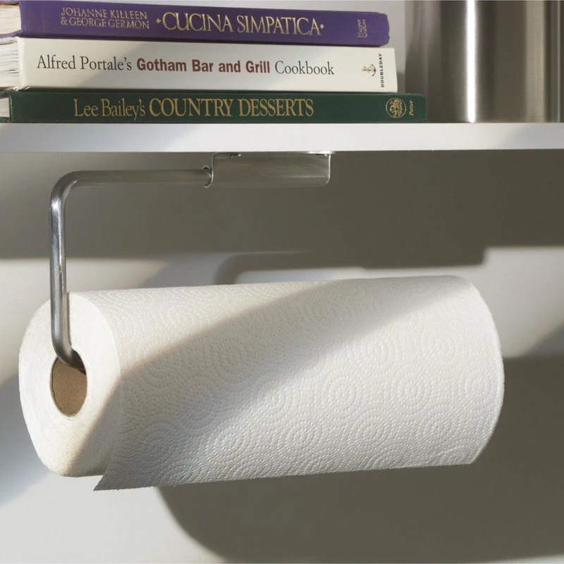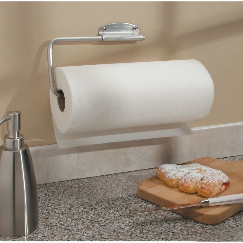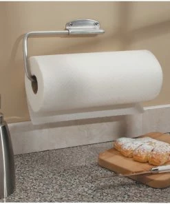 Keep paper towel in reach with the iDesign Forma Swivel Paper Towel Holder! This paper towel holder allows you to conveniently place a paper towel dispenser in an accessible area while the swivel motion allows you to grab the towel with ease. Easy to mount with all included hardware, you can have your kitchen organized in a snap. Never be caught with messy hands or a spill, and not know where the paper towel roll is! Paper towel holder measures 12″ x .75″ x 4.5″.