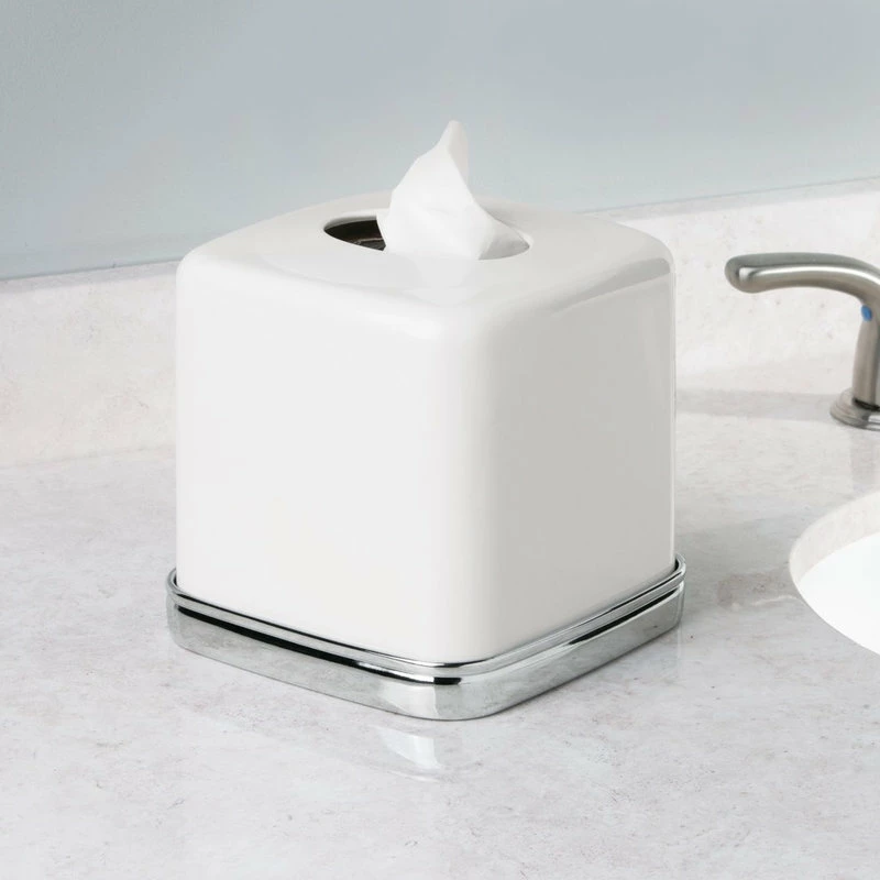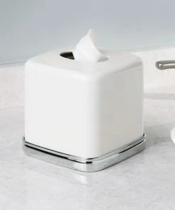 Add style and class to your bathroom with the iDesign York 2 Boutique Tissue Box Cover! This high-quality box slides over your favorite brand of facial tissue to bring luxury to your bathroom or bedroom. Constructed of durable steel, this box is easy to clean and will last for years to come. The simple brushed design easily matches with any room decor for a cohesive look. The iDesign York 2 Boutique Tissue Box Cover measures 5.75″ x 5.75″ x 5.5″ to fit over square boxes.