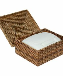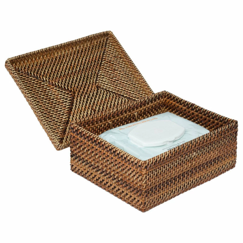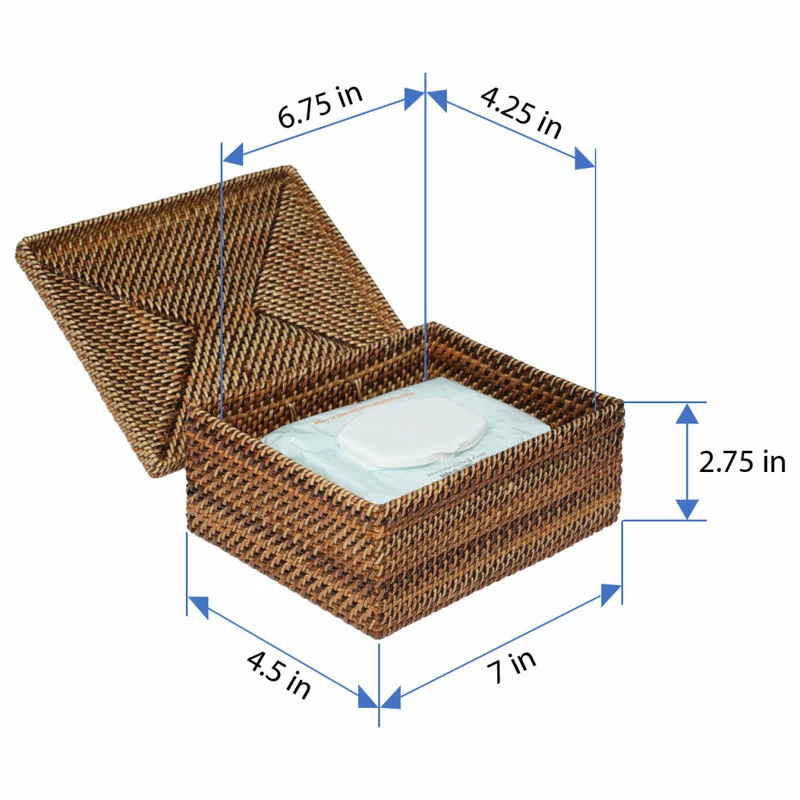 If you like to keep your bath- or powder room neat and decorated without compromises, consider hiding your plastic box or bag of wet wipe refills in this tightly woven box. That way your wet wipes box can stay in plain sight and within reach. This works also with most baby wipe brands.