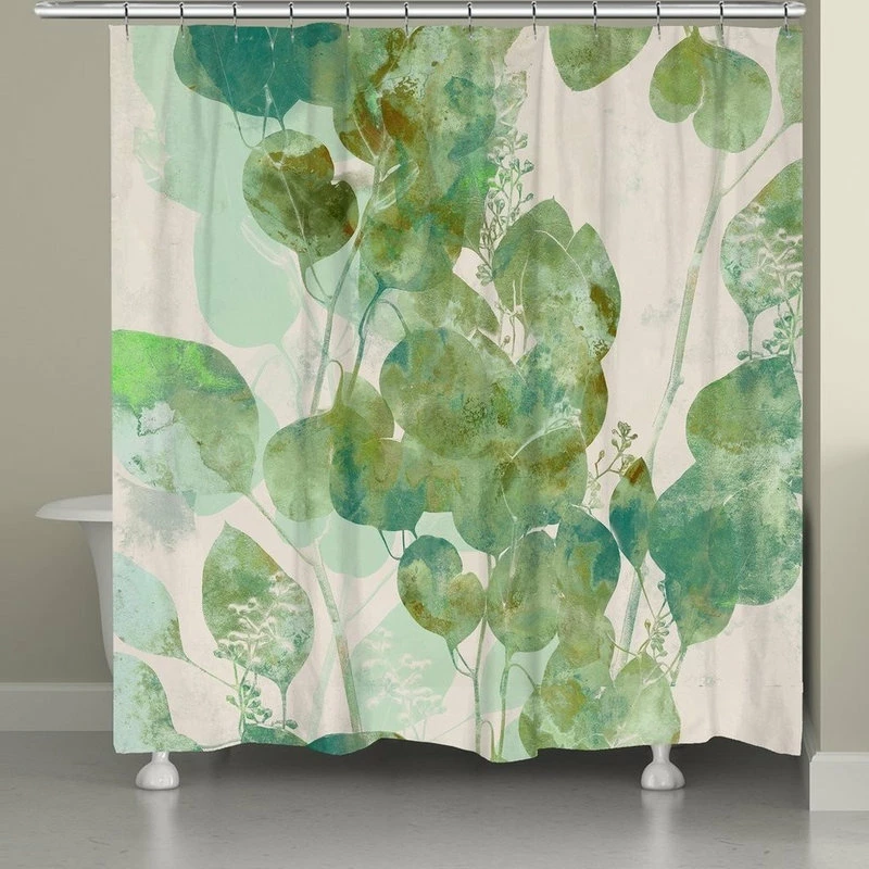 Laural Home’s “Green Watercolor Eucalyptus Leaves” features a perfectly soothing array of eucalyptus leaves, making it the perfect accessory to create a spa-like sanctuary in your very own bathroom.