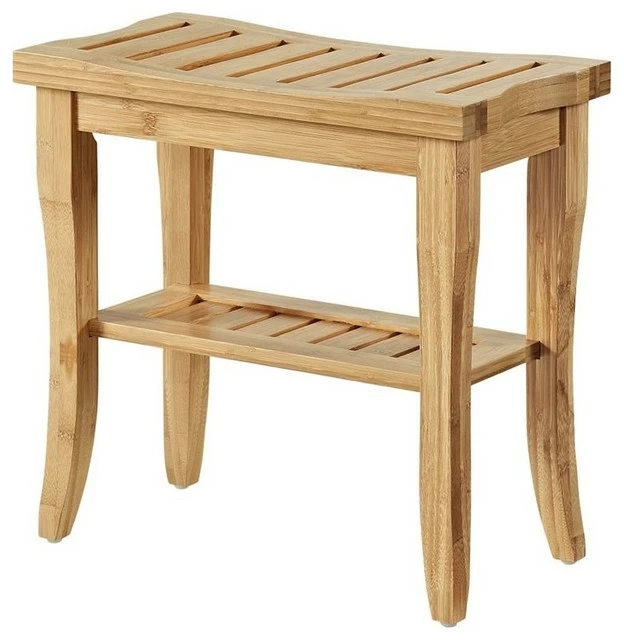 Add easy style and function to your bathroom with the Bracken Bamboo Stool. The stool features a spacious curved top and slightly splayed legs. A small shelf is perfect for holding linens or other necessities. Crafted from solid bamboo, the stool is both sturdy and durable.