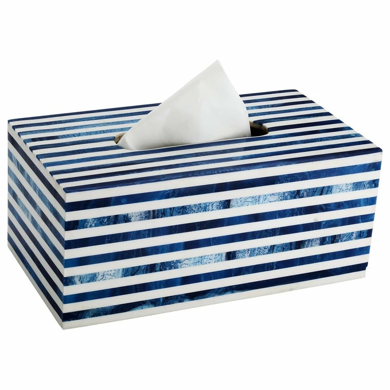 Mascot Hardware striped tissue box cover is more than a simple bathroom necessity; itβs a chic accent piece. This collection is a wide assortment of items for the home as well as the bath. This tissue box cover has an inspiring combination of design, functionality, and sophistication that will enhance any decor theme with style and charm for many years to come. Fits over standard-sized tissue, kleenex boxes and the open bottom makes refilling easy. The modern design adds a decorative touch to your bathroom decor. Keep your tissues looking stylish with this tissue box cover holder. With this tissue box container you can keep your tissues close at hand on your countertop, desk or in your bathroom without having to give up your elegant decor. Low maintenance and practical, the open bottom cover design makes refilling quick and easy. Wherever you use it, you can be certain that this collection will reflect your sense of style.