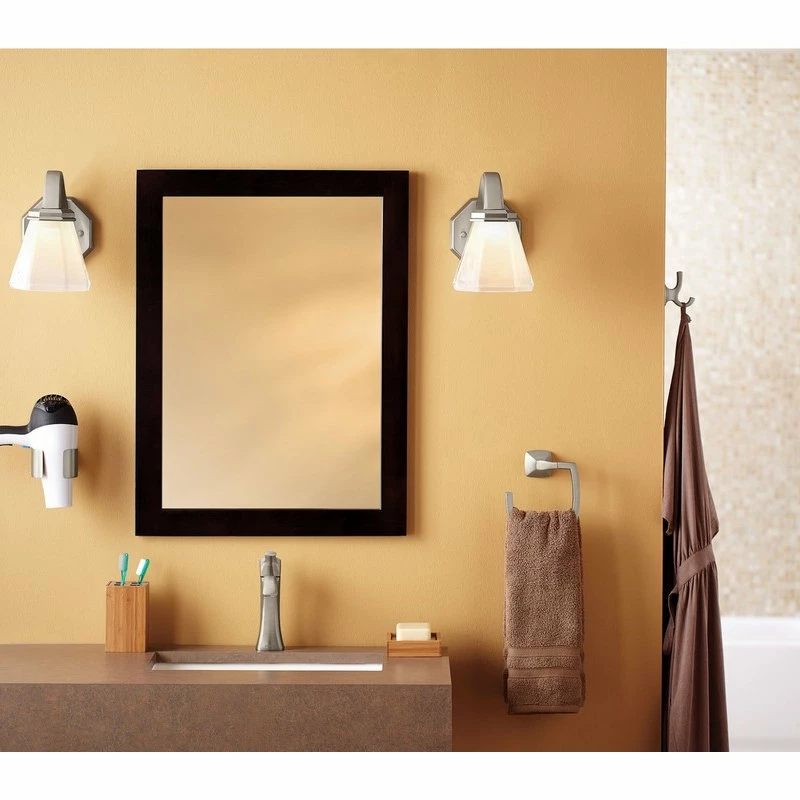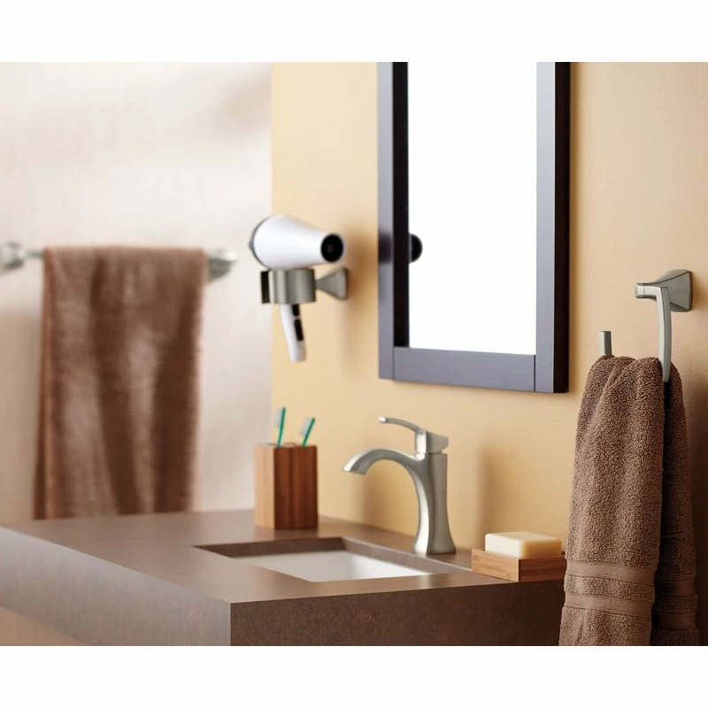 - Brushed nickel finish brings the warm look of stainless to your bath
