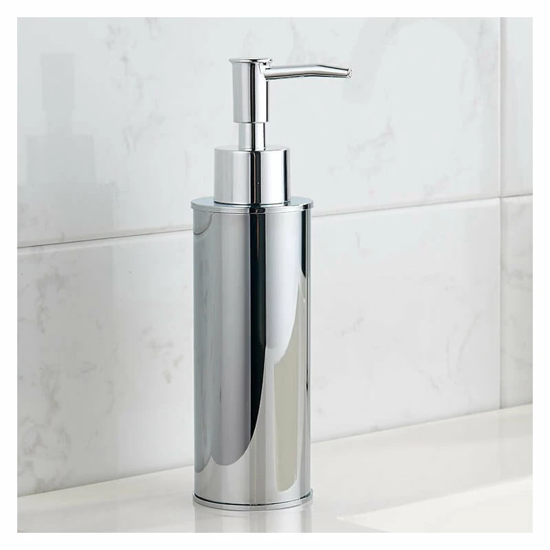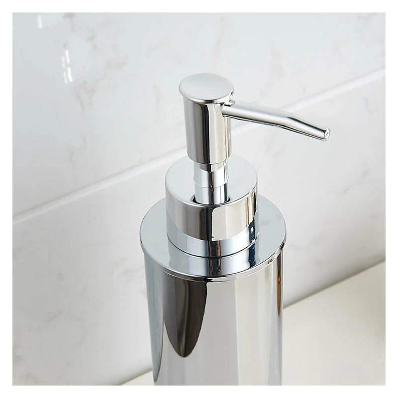 This modern round soap dispenser by luxury brand Nameeks is a perfect addition to your bathroom. Crafted out of stainless steel in a polished chrome finish (pump is made of plastic), this soap dispenser will add the needed accent to your bathroom. Soap dispenser is easy to clean and features an internal fillable plastic soap container.