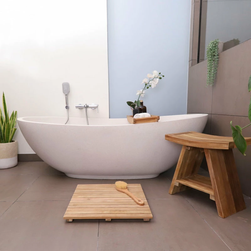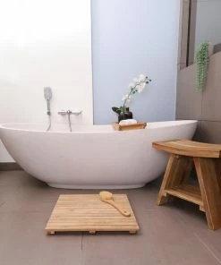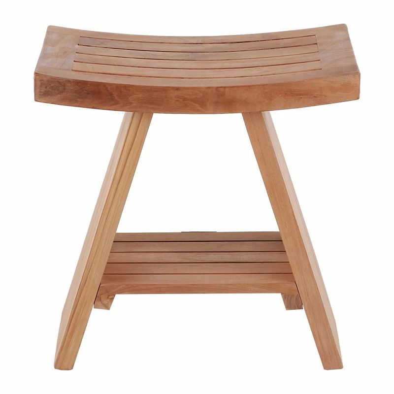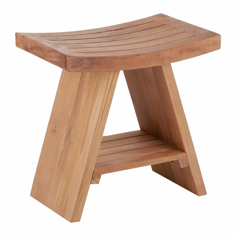 - Sustainably Harvested 100% Solid Teak Wood Shower Stool