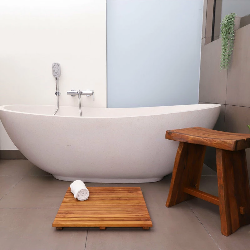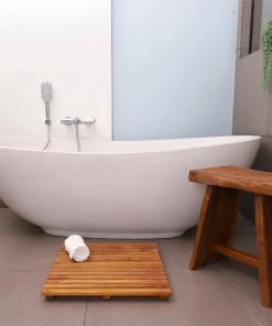 - Sustainably Harvested 100% Solid Teak Wood Shower Stool