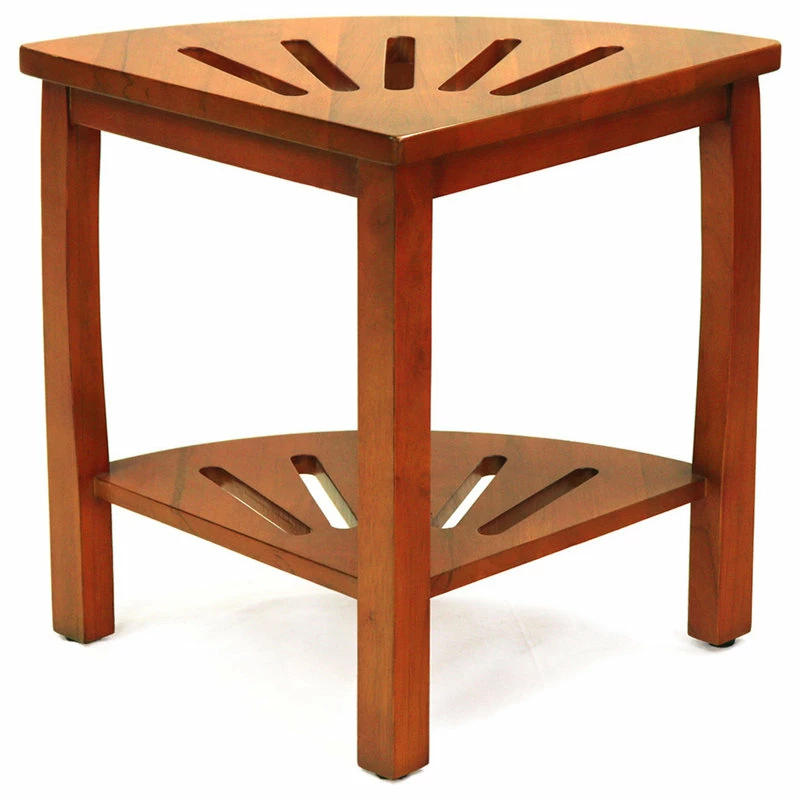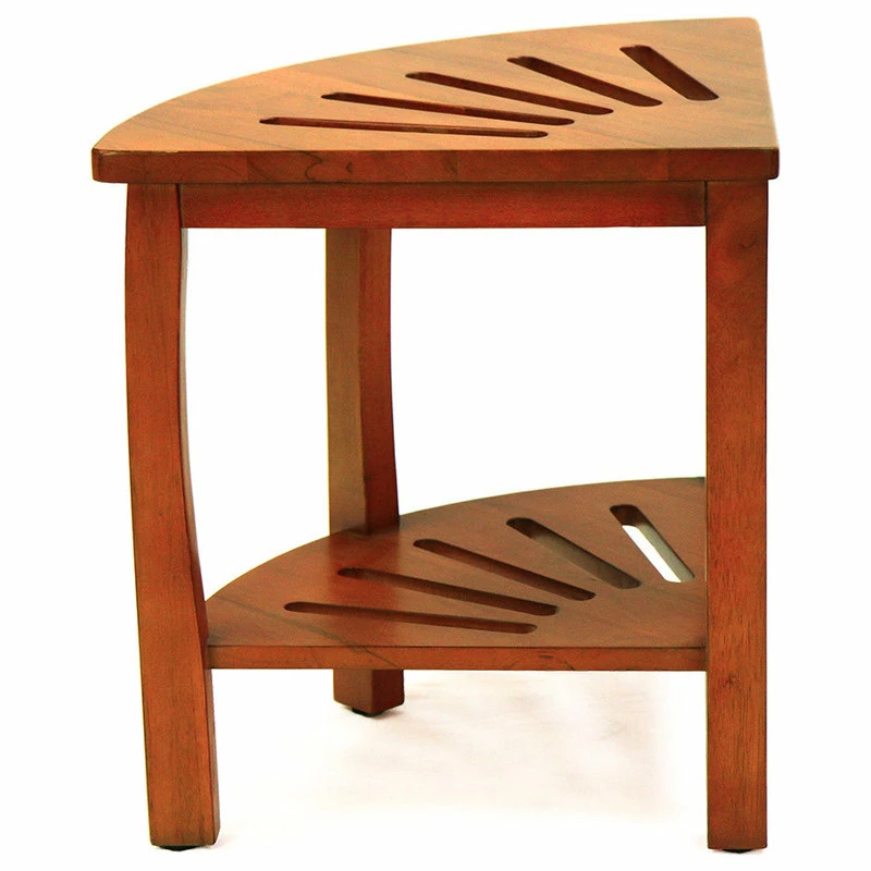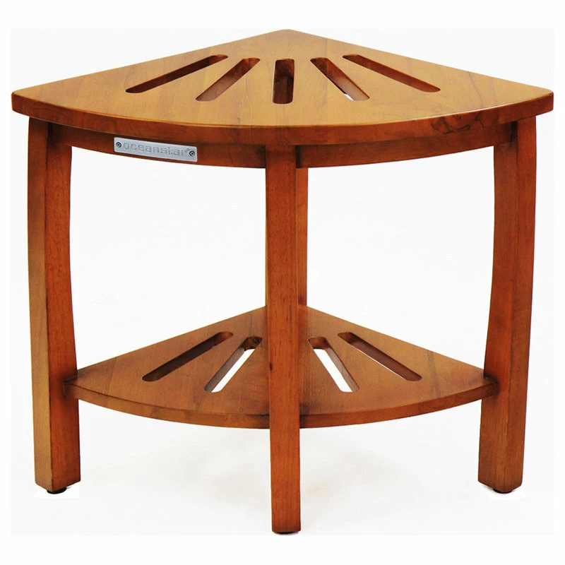 Create the ideal spa atmosphere in your home and bath setting with the Oceanstar Corner Spa Shower Bench Seat with Storage Shelf. Whether you need an extra seat or stool in the shower, a storage shelf, an entryway seat, or just a bench to sit and relax, the Oceanstar spa bench is multifunctional and designed to make full use of your space anywhere in the home. The rounded triangular shape allows it to be optimally placed in corners or next to furniture. It is made with Thailand Rubberwood for durability and designed to complement any home environment. Both top and bottom shelf features slats for better air circulation and water flow. Each leg has a nonslip leveler that keeps the bench slightly elevated and provides stability. No assembly is required so you can start using the Spa bench as soon as it arrives. No matter the size of your home, the Oceanstar Corner Spa Shower Bench Seat helps you save space and make extra room all at once.