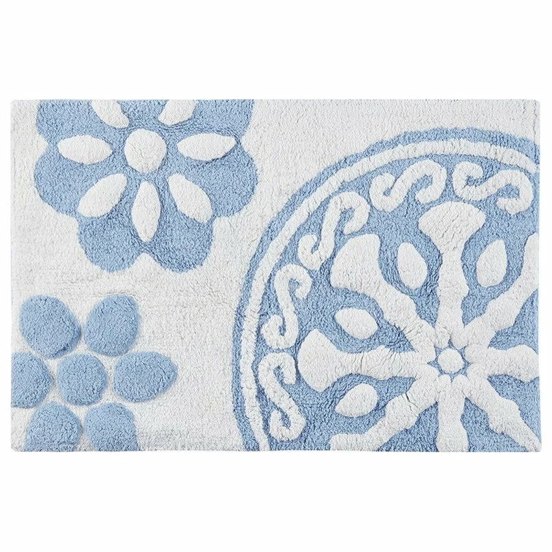 Bring a modern bohemian touch to your bathroom. Featuring an alluring medallion design, this bath mat is made from 100% tufted cotton for a textured look and is soft to the touch. A latex spray provides a skid resistant reverse to keep the rug in place. Machine washable for easy care, this cotton tufted rug helps rejuvenate your decor.