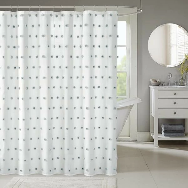 Add a fun update to your space with the Sophie shower curtain. The solid white background features rows of blue fabric pom poms, adding beautiful texture and a stylish update to any bathroom.