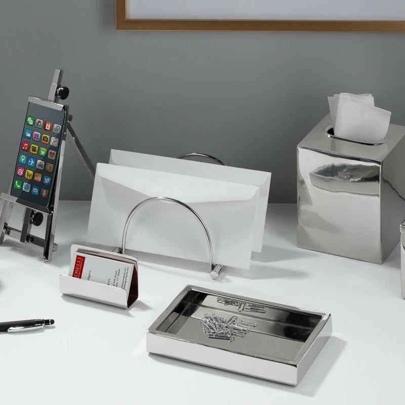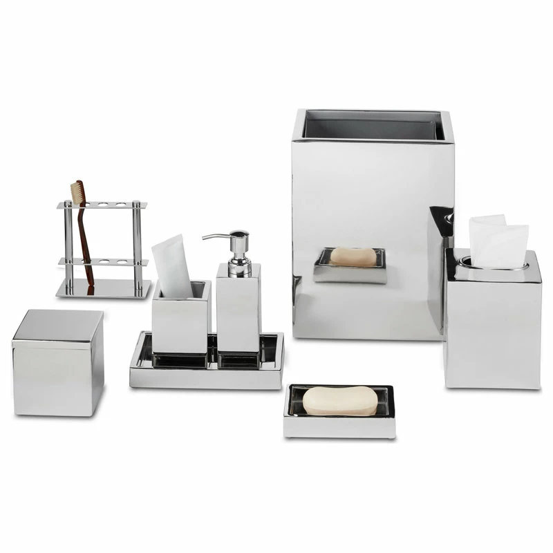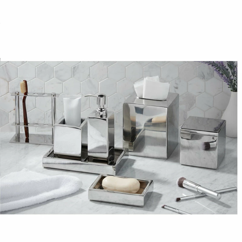 Upgrade your average tissue box with the Roselli Trading Companyยฎ Modern Bath Tissue Cover. Made from solid stainless steel, this square tissue box makes a sleek, minimal addition to a desk or bathroom vanity. Pair it with other elements of modern bathroom design for a cohesive feel.