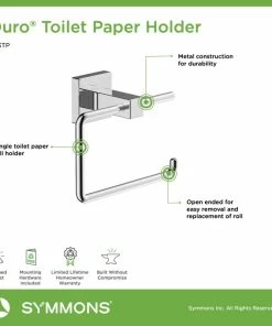 Crafted of quality materials, products in the Symmons Duro suite will not only look minimalistic and modern but operate seamlessly for a lifetime. This Duro Wall Mounted Toilet Paper Holder provides easy access to a single roll of toilet paper. Constructed of brass and stainless steel, this toilet paper holder includes the mounting hardware needed for a simple and sturdy installation. Like all Symmons products, the Duro Toilet Paper Holder is backed by a limited lifetime consumer warranty and 10 year commercial warranty.