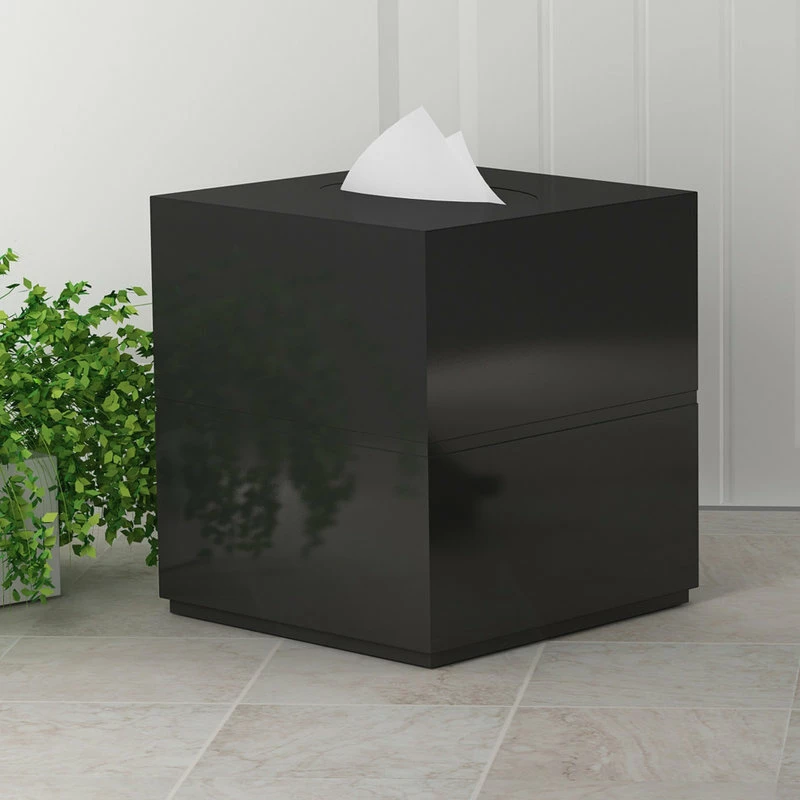 Turn a practical item into a pretty one using the modern Loft Boutique Tissue Box Cover. Made from shiny black resin, this square tissue box is simple and sleek. Display it alongside other pieces from the Loft bath collection for a cohesive look.