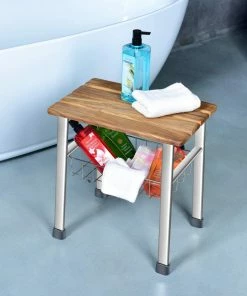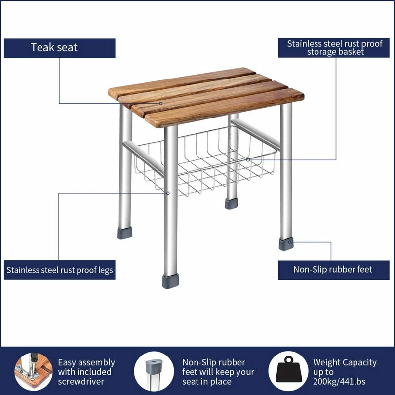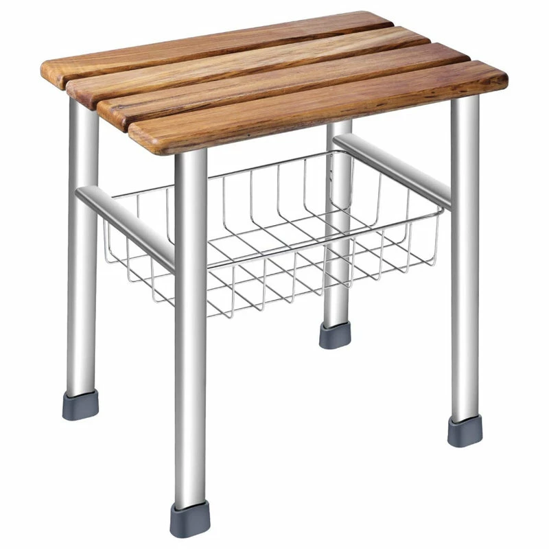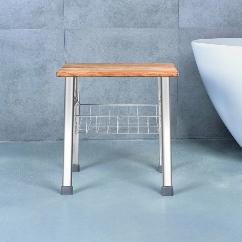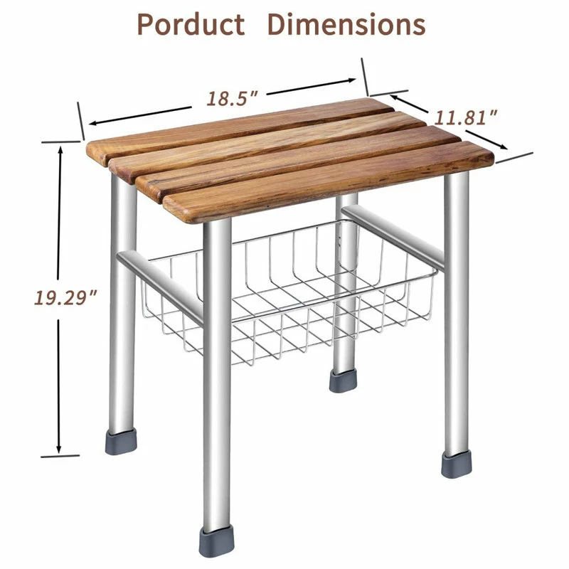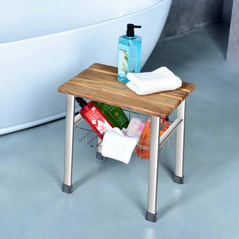 one thing that makes our shower seat organizer different from other ordinary shower benches is its quality! The seat is crafted with beautiful and durable teak,the legs and basket are made from high strength and rust-resistant 304 level stainless steel.These deluxe meterial ensure that your seat always look as good as new.
