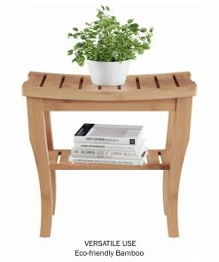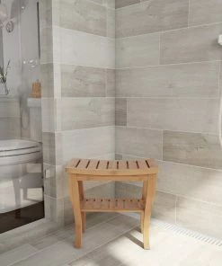 Deals ๐งจ EcoDecors EarthyTeak Tranquility 24″ Teak Shower Bench With Shelf โ๏ธ