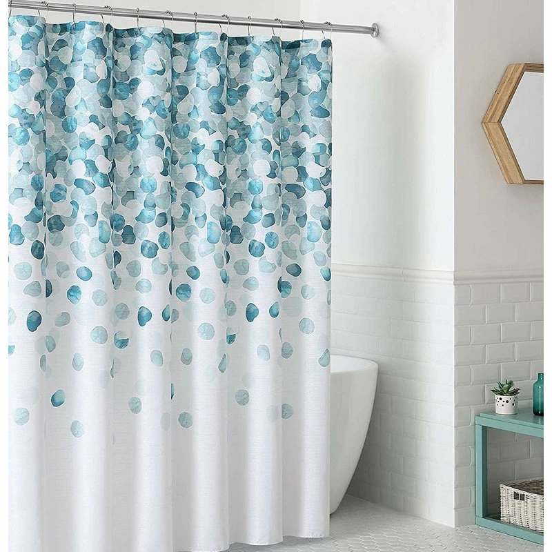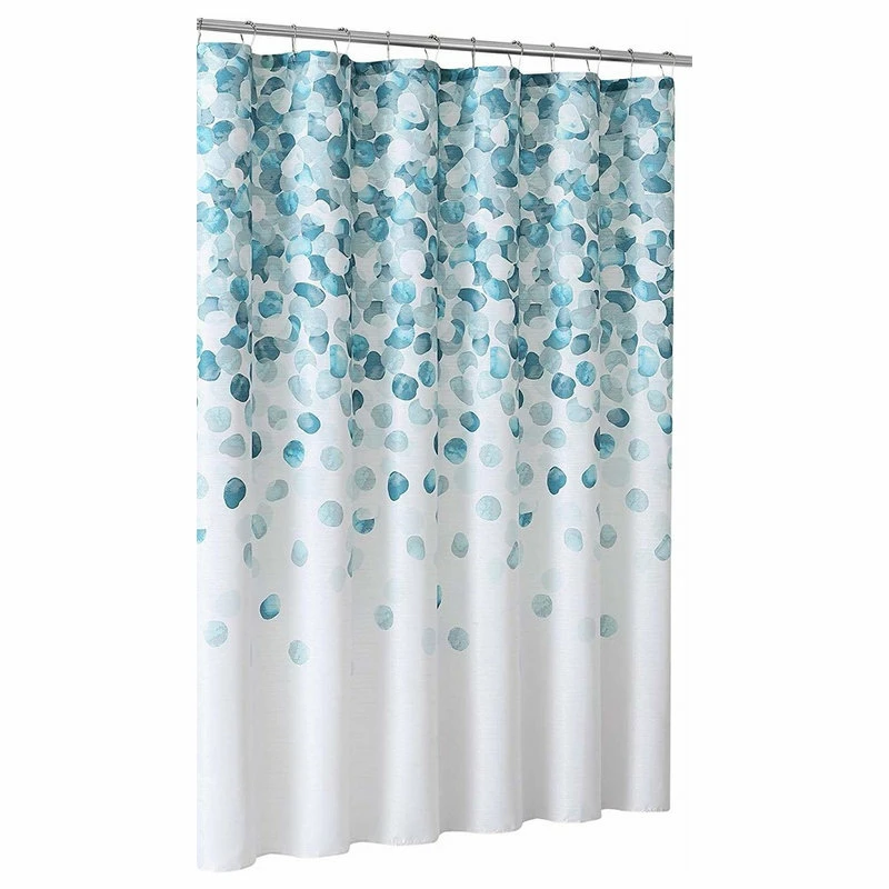 - Universal Bathroom Shower Curtain for Men or Women: Decorative Colors of Blues and White.